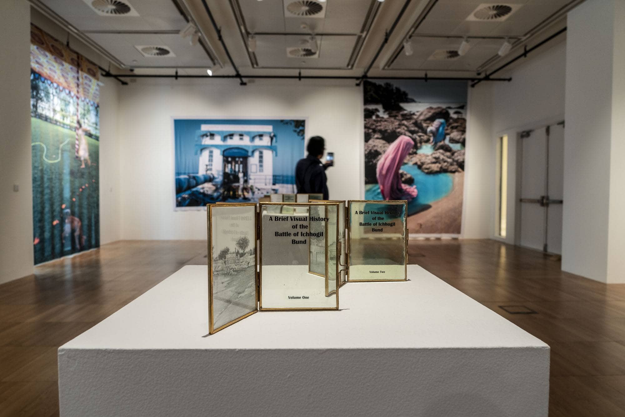 The second aspect that really stood out was the Infrathin. A Duchampian phrase which is hard to define. Like a Venn Diagram that appears as two side by side circles. Or as Hector Obalk says, the “infrathin characterizes any difference that you can easily imagine but doesn’t exist, like the thickness of a shadow”. Abdulaziz works through various objects that she doesn’t quite fit inside. Sometimes she gets close but she, and by extension all of us, never perfectly fit into many roles.