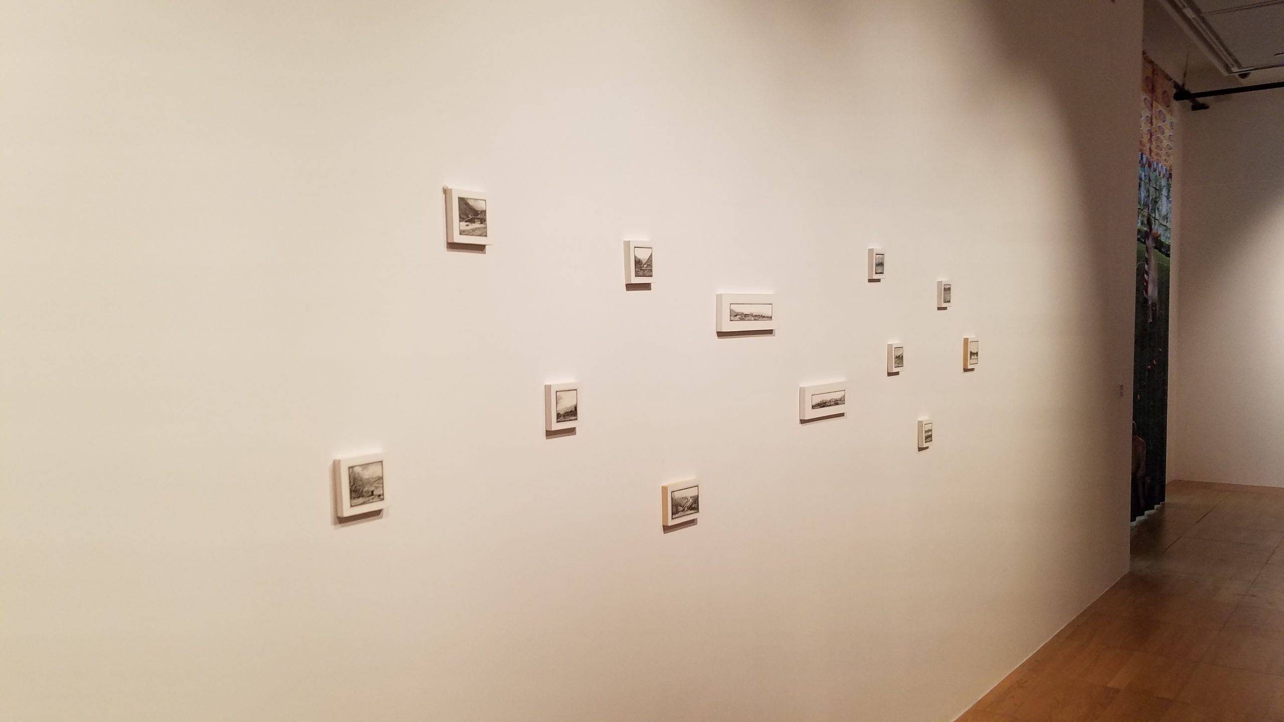Crossings and Corridors featured the work of Saba Qizilbash and Linda Adele Goodine, two artists who deal with difficult geopolitical realities in their work through widely different methods. Qizilbash’s intricate, enticing drawings lure the viewer into a charged, hostile space, such as a border crossing between Pakistan and India. Goodine’s work, massive, complex, and vividly colorful deals with topics such as the rising conflicts in the struggle between land conservation and economic progress.