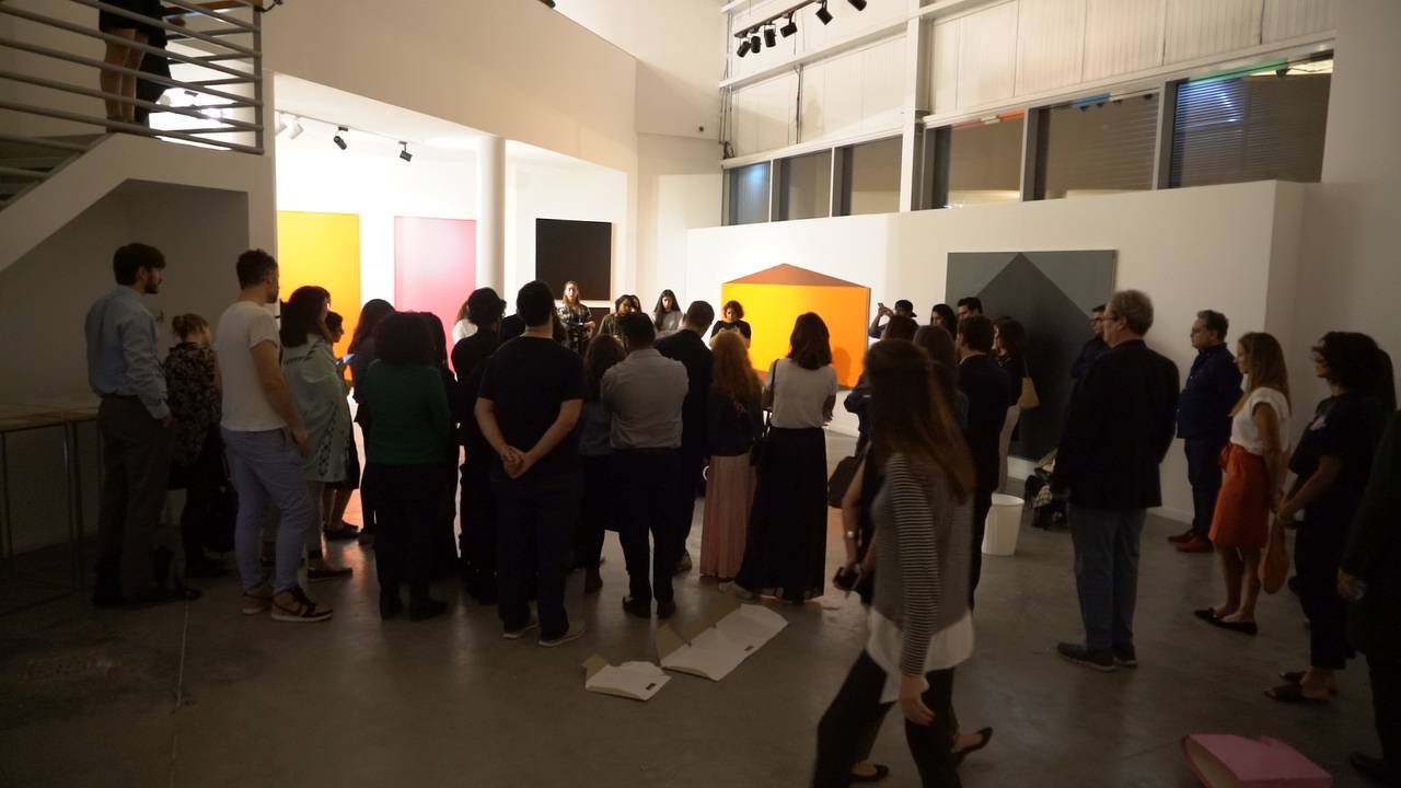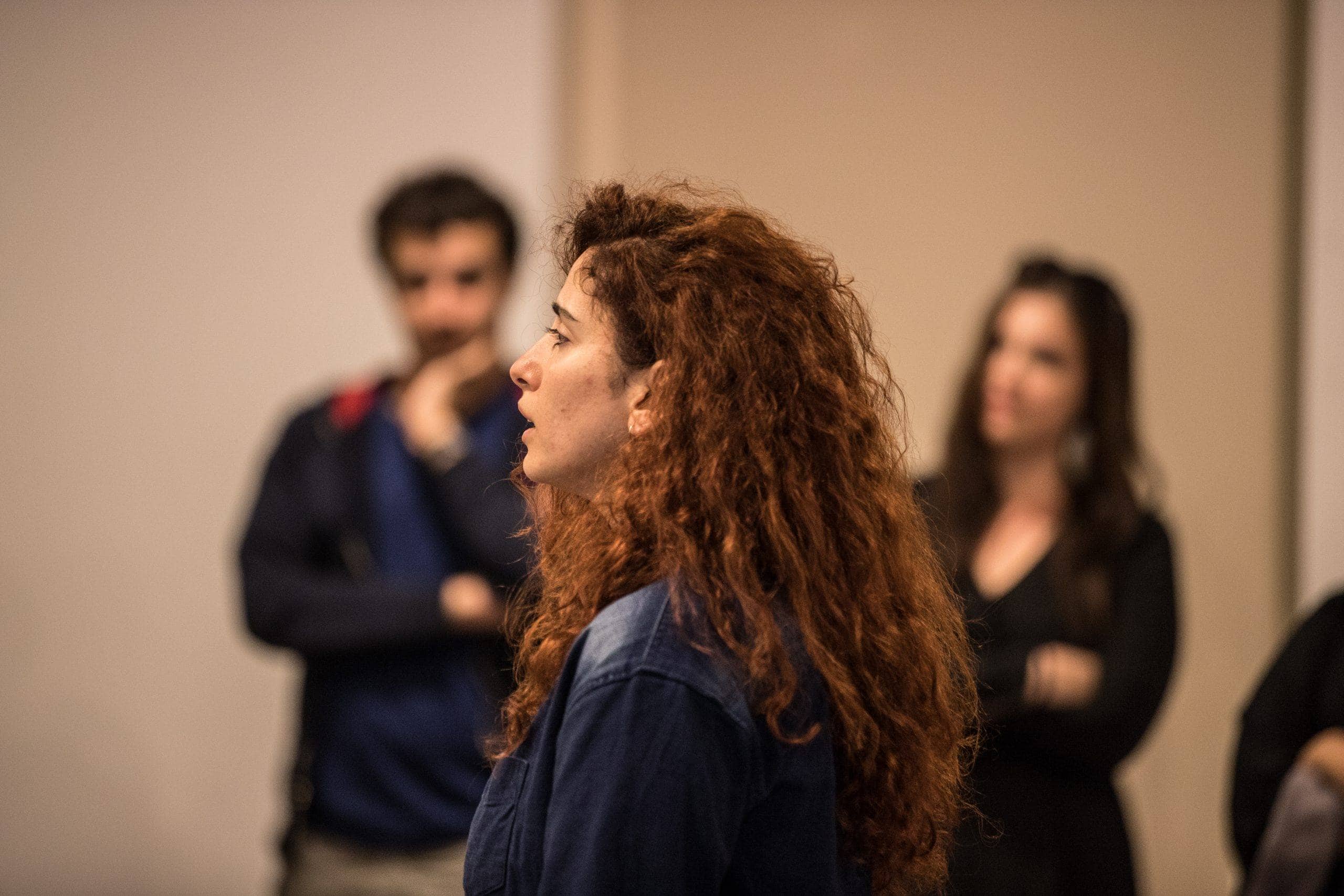Repetition was the first aspect. Mosset painted a flat black circle in the center of a canvas, and then repeated it in more than two hundred paintings over the next decade. BMPT never repeated the manifestations, although they did four distinct versions. I asked the artists to think about how repetition changes or breaks work. Kaoud sings a Palestinian lullaby, then sings it again and again, inviting the audience to join in on this anxiety reducing exercise.
