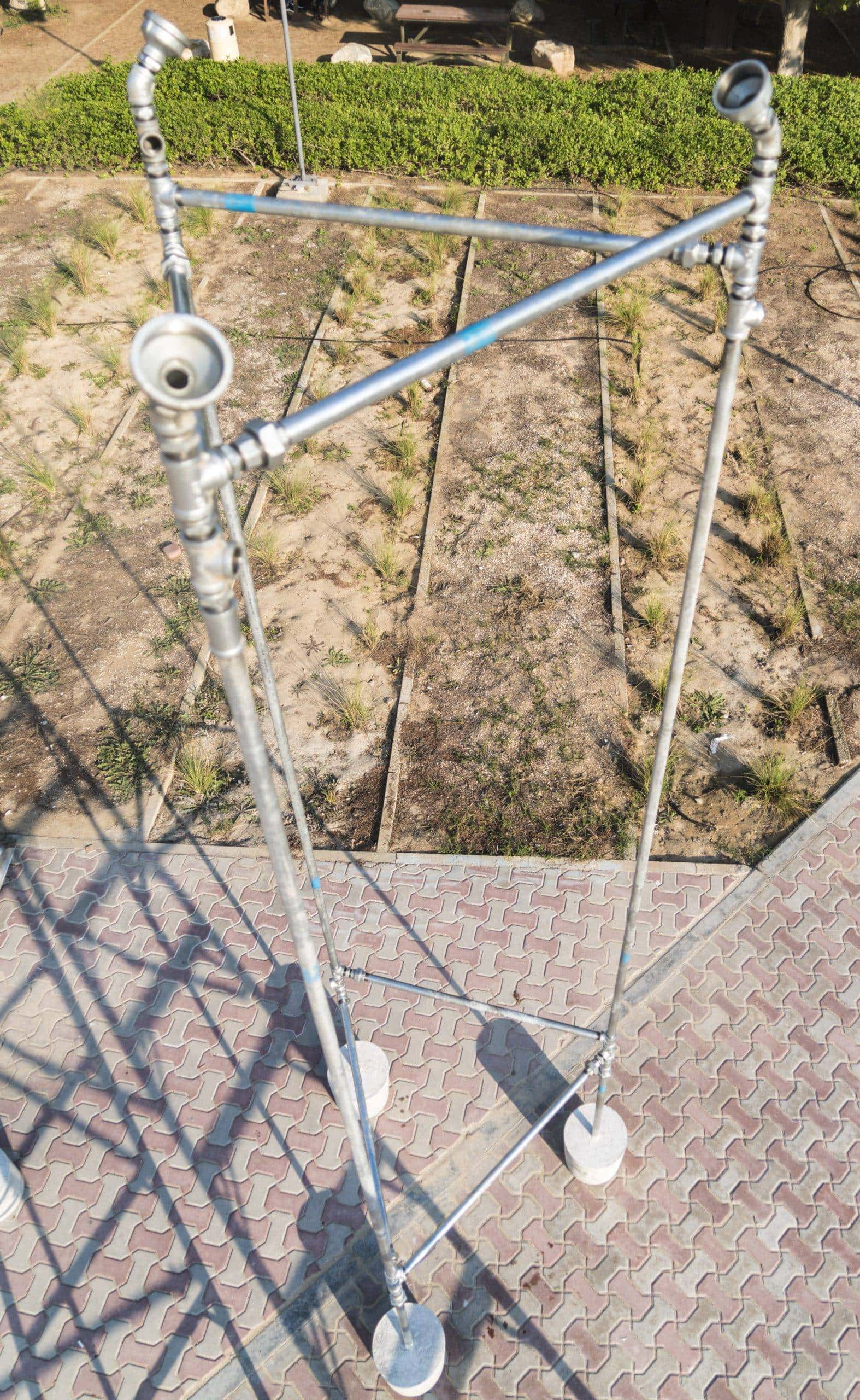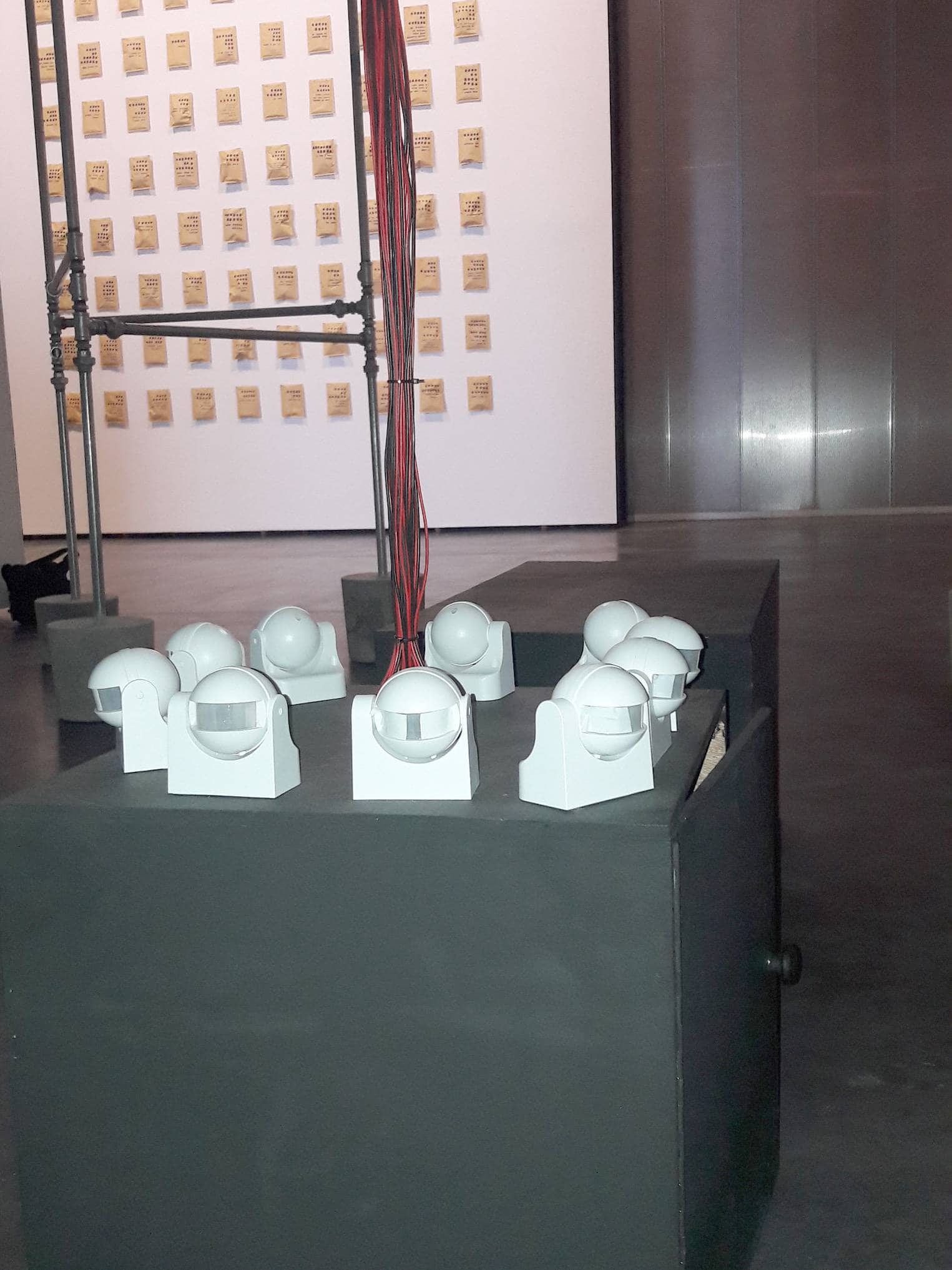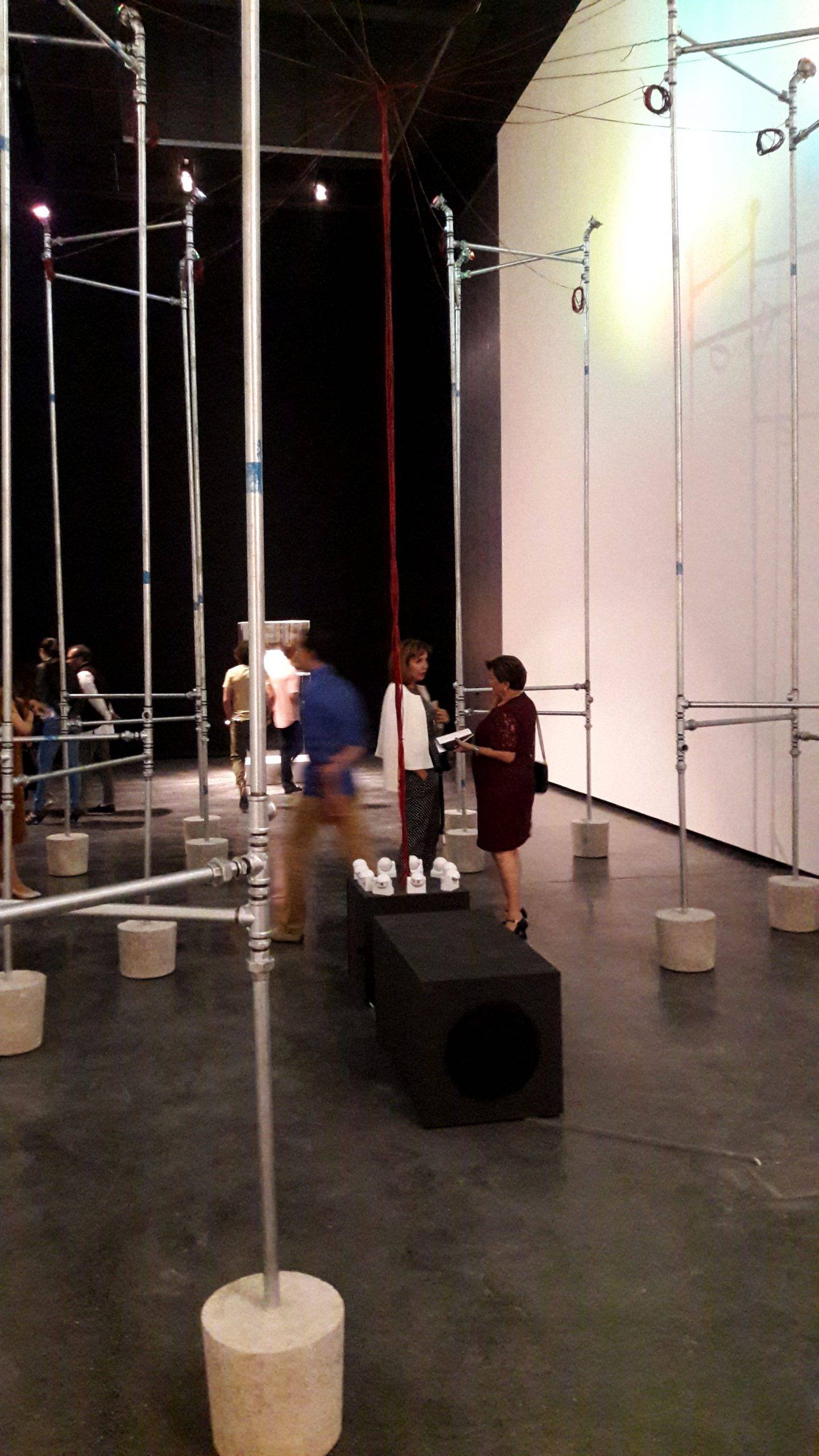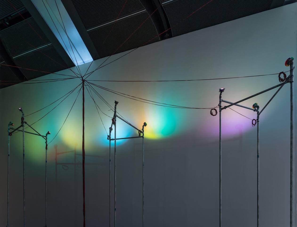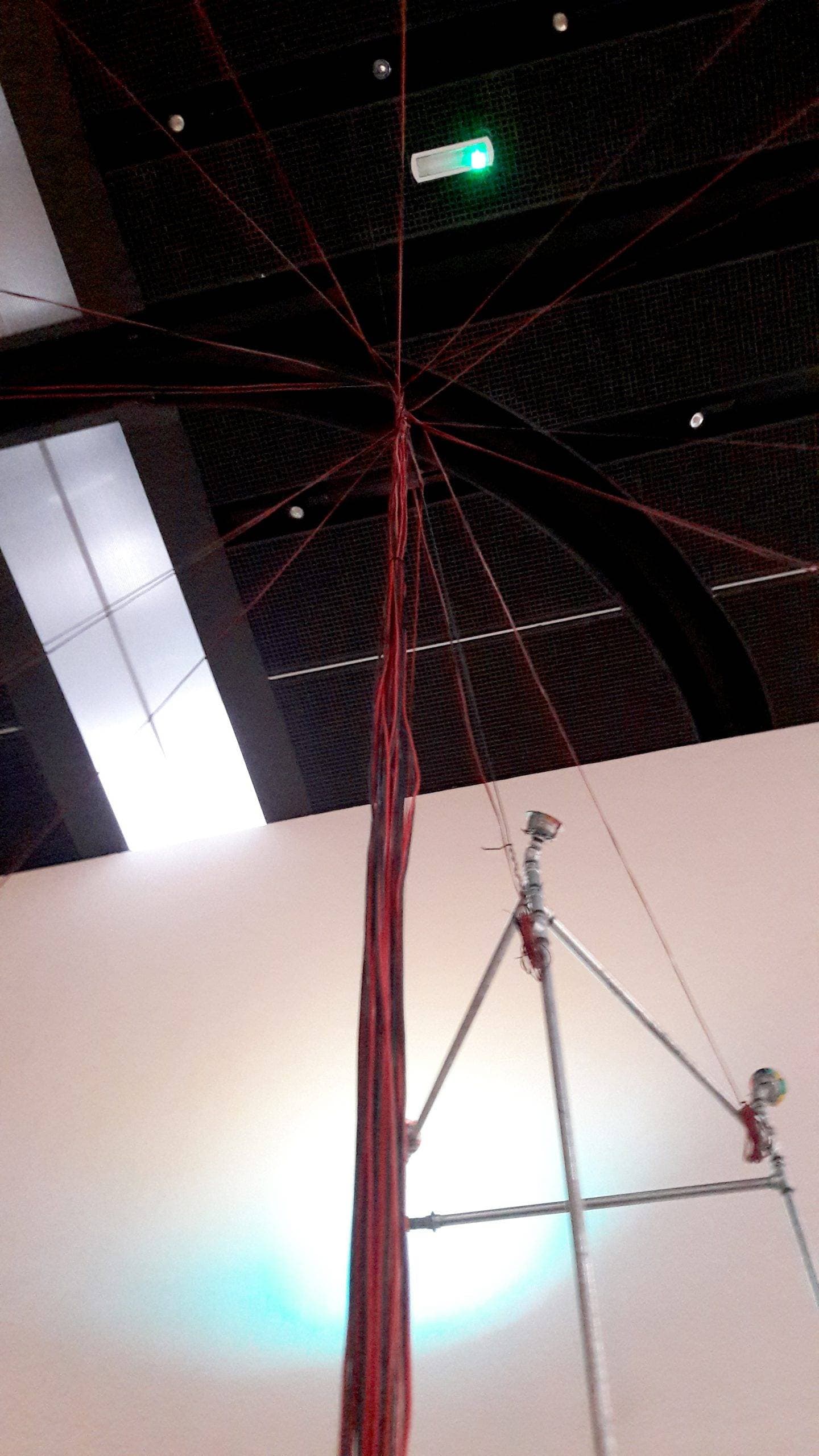Using the materials of infrastructure—steel pipes, concrete, electrical cables—this work looks at these varied networks though the overlay of mycelial networks. Overall the work reacts to the audience, seemingly communicating about the visitor’s intrusion.