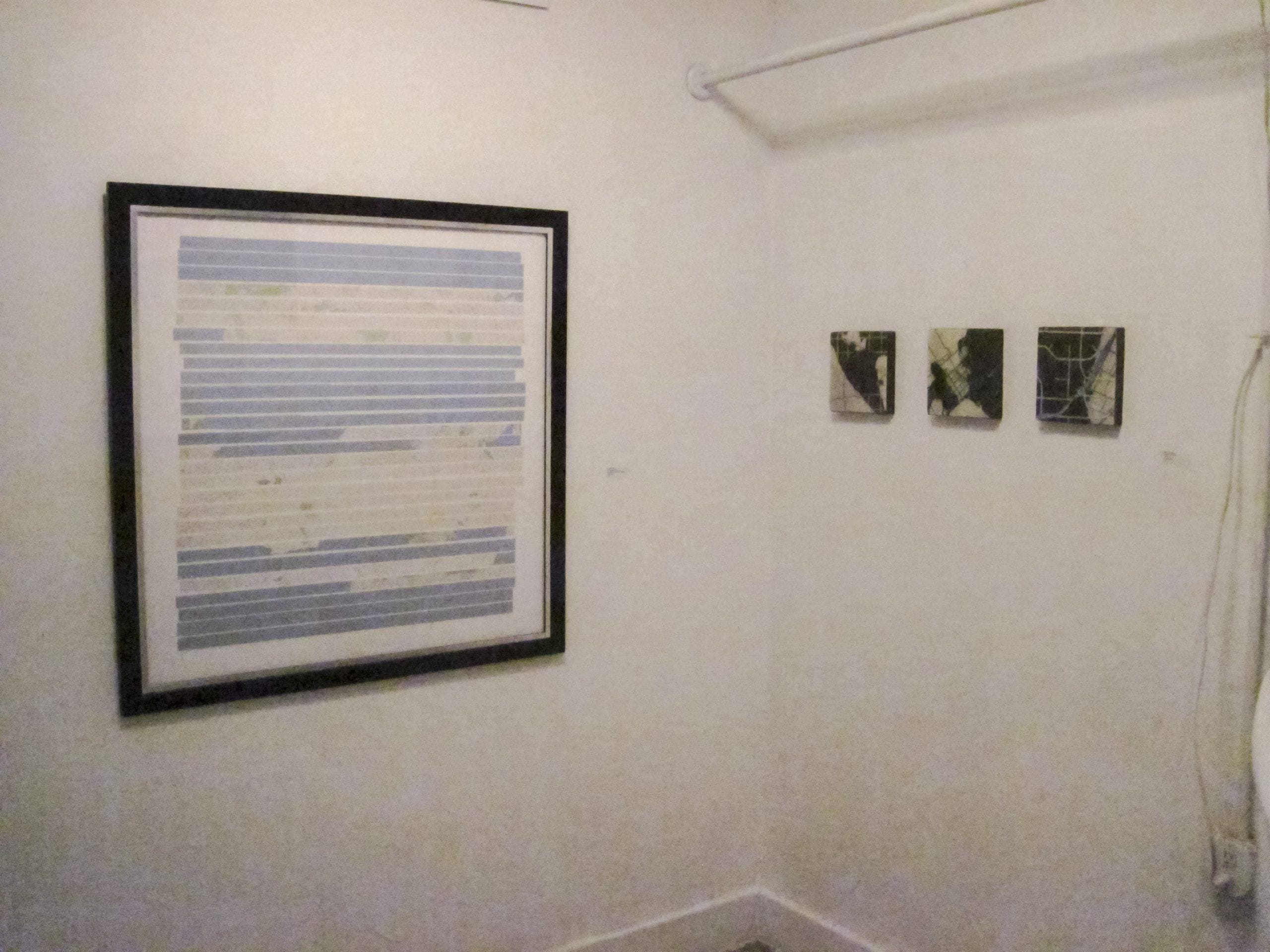 Dutch artists Topp & Dubio visited the former Dutch colony of Indonesia with maps of an Indonesian restaurant in The Hague. They used the maps as travel guides and communications tools. Born in Romania but living in the Tennessee after pursuing a PhD in computer science at Columbia, Tiberiu Chelcea letterpress prints circuit boards to create the outlines of cities. Scottish artist Stuart McAdam shows a gps tracing of his 2000+ mile roundtrip between Glasgow and the Netherlands. Georgia based Sage Dawson creates small maps from hair that also become memorials to the places based on her memory.