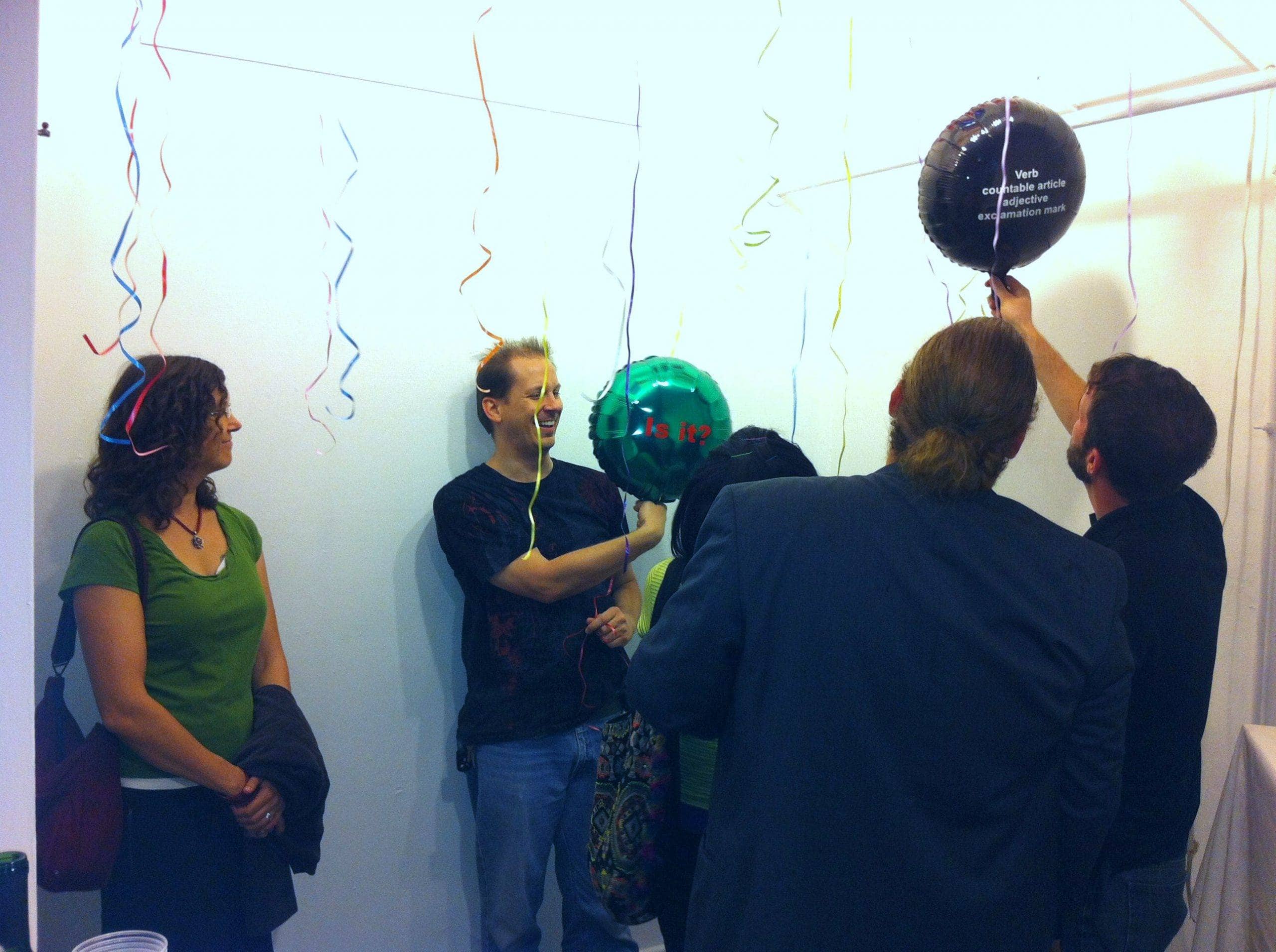 An interactive game with the social norms and conventions that demand people to celebrate the sex/gender of the newly born as an important element / identity / quality of their existence. A comment on celebrating “normality” instead of uniqueness and freedom. The viewer is encouraged to play with the balloons and pull them down to read what is written on them.