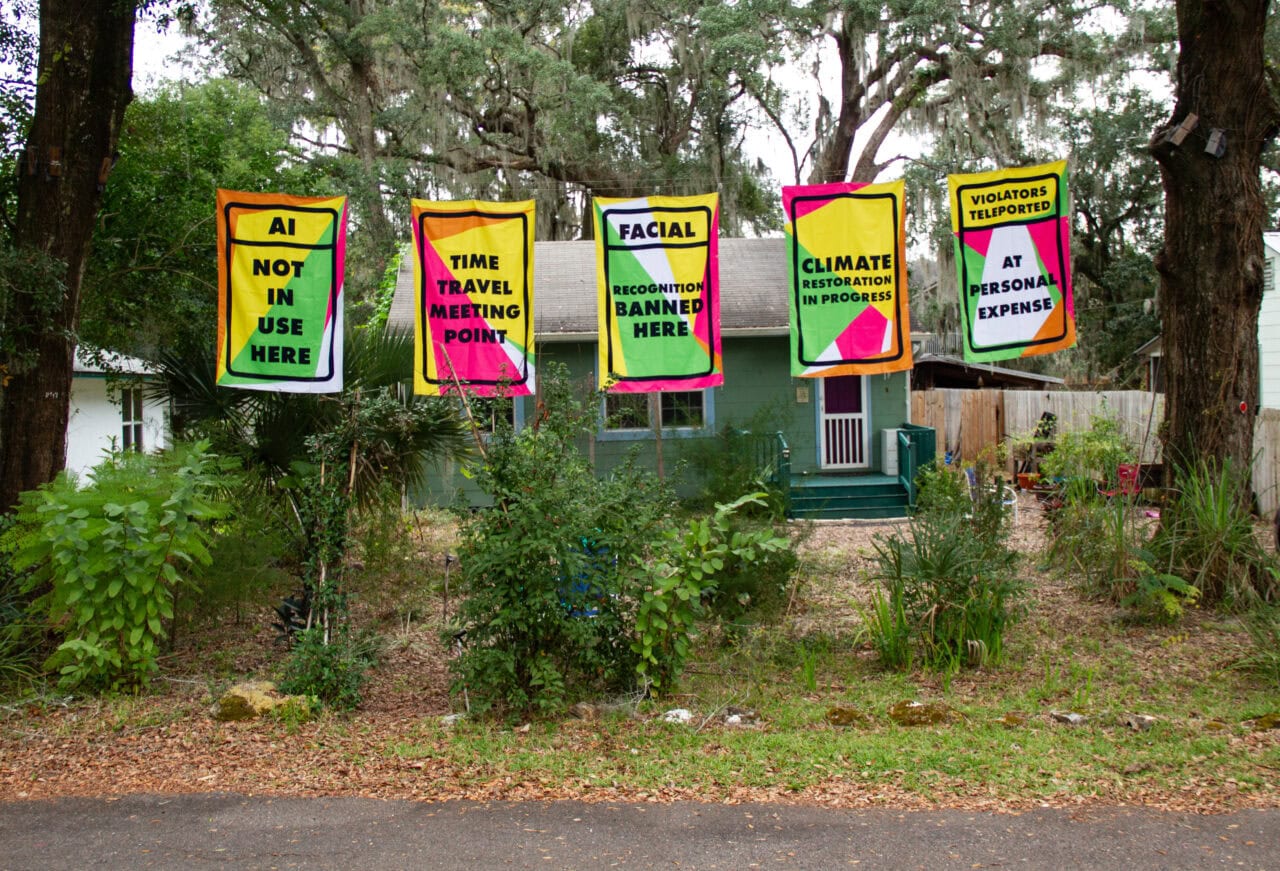 Pennant Place is an outdoor, site-responsive exhibition platform in Gainesville, Florida, presenting temporary, rotating public art. It functions as both a curatorial method and a venue, supporting artists whose work engages social, political, and speculative futures outside traditional gallery constraints.